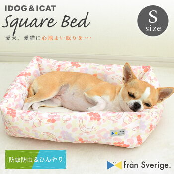 【 犬 猫 ベッド 】IDOG&ICAT ひんやり防虫スクエアベッド フルーツ IDOG×fran Sverige. Sサイズ moscape COOL アイドッグ【 あす楽 翌日配送 】【 ひんやり 接触冷感 防虫 防蚊 クッション ハウス ペットベット 犬のベッド 猫のベッド ドッグハウス 春用 夏用 】